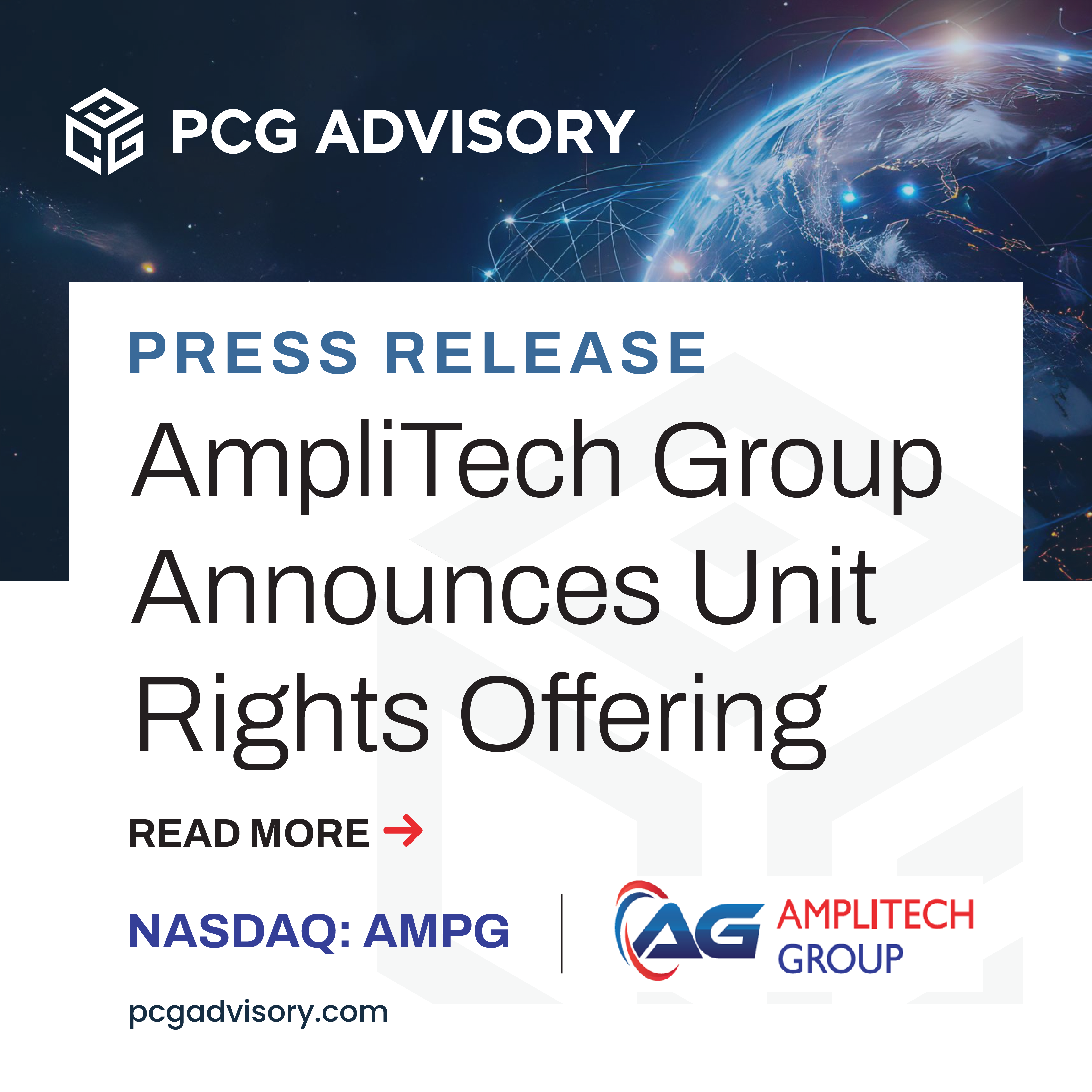 HAUPPAUGE, N.Y., Oct. 30, 2025 (GLOBE NEWSWIRE) -- AmpliTech Group, Inc. (Nasdaq: AMPG, AMPGW) (the "Company" or “AmpliTech”), a leading designer and manufacturer of advanced signal-processing components for satellite, 5G/6G networks, and quantum systems, today announced that it intends to offer to its shareholders and certain warrantholders a dividend in the form of a transferable unit subscription right ( “Unit Rights”) to participate in the unit rights offering.