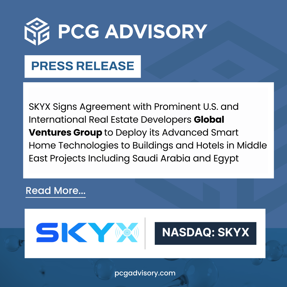 MIAMI, Oct. 28, 2025 (GLOBE NEWSWIRE) -- SKYX Platforms Corp. (NASDAQ: SKYX) (d/b/a SKYX Technologies) (the “Company” or “SKYX”), a highly disruptive platform technology company with over 100 pending and issued patents globally and over 60 lighting and home décor websites, with a mission to make homes and buildings become smart and safe as the new standard, today announced that it has entered into an agreement with Global Ventures Group, a leading U.S. and international real estate development firm based in Chicago, Illinois. Under the agreement, SKYX’s advanced smart home and smart building technologies will penetrate residential, commercial, and hotel projects across the Middle East, including developments in Saudi Arabia and Egypt. The collaboration marks a significant step in SKYX’s global expansion strategy as it continues to advance its mission to make homes and buildings smarter, safer, and more connected as the new standard.